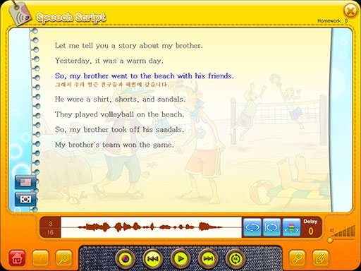 | Song | Play | Reading | Play | Dictation | Test | 교재 Listening 문제 음원 |