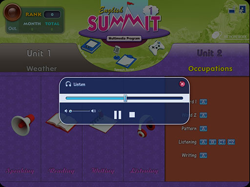 | Song | Play | Reading | Play | Dictation | Test | 교재 Listening 문제 음원 |
