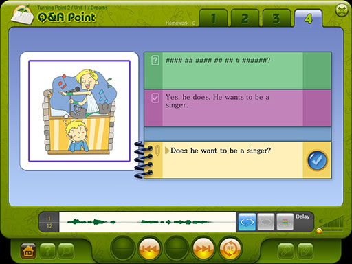| Song | Play | Reading | Play | Dictation | Test | 교재 Listening 문제 음원 |