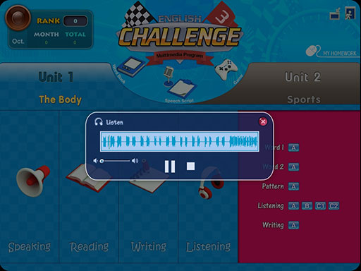 | Song | Play | Reading | Play | Dictation | Test | 교재 Listening 문제 음원 |